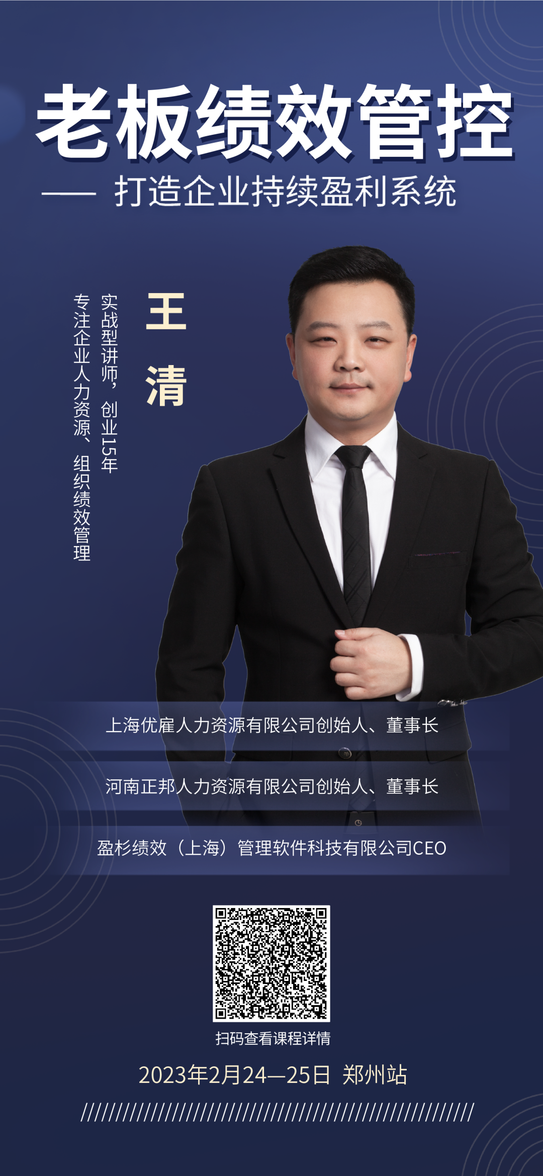 正邦人力创始人 王清 先生专注企业人力资源15年,将于2月24日--2月25日,两天一夜现场教学,带您